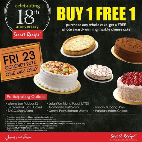 secret recipe cake promotion malaysia whole cheese cakes 18th anniversary october award marble winning contests oct any food purchase enjoy